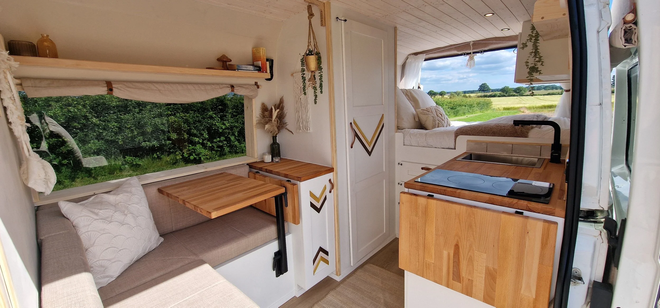 Large bench seats with plenty of storage – accessed via doors on front and top
