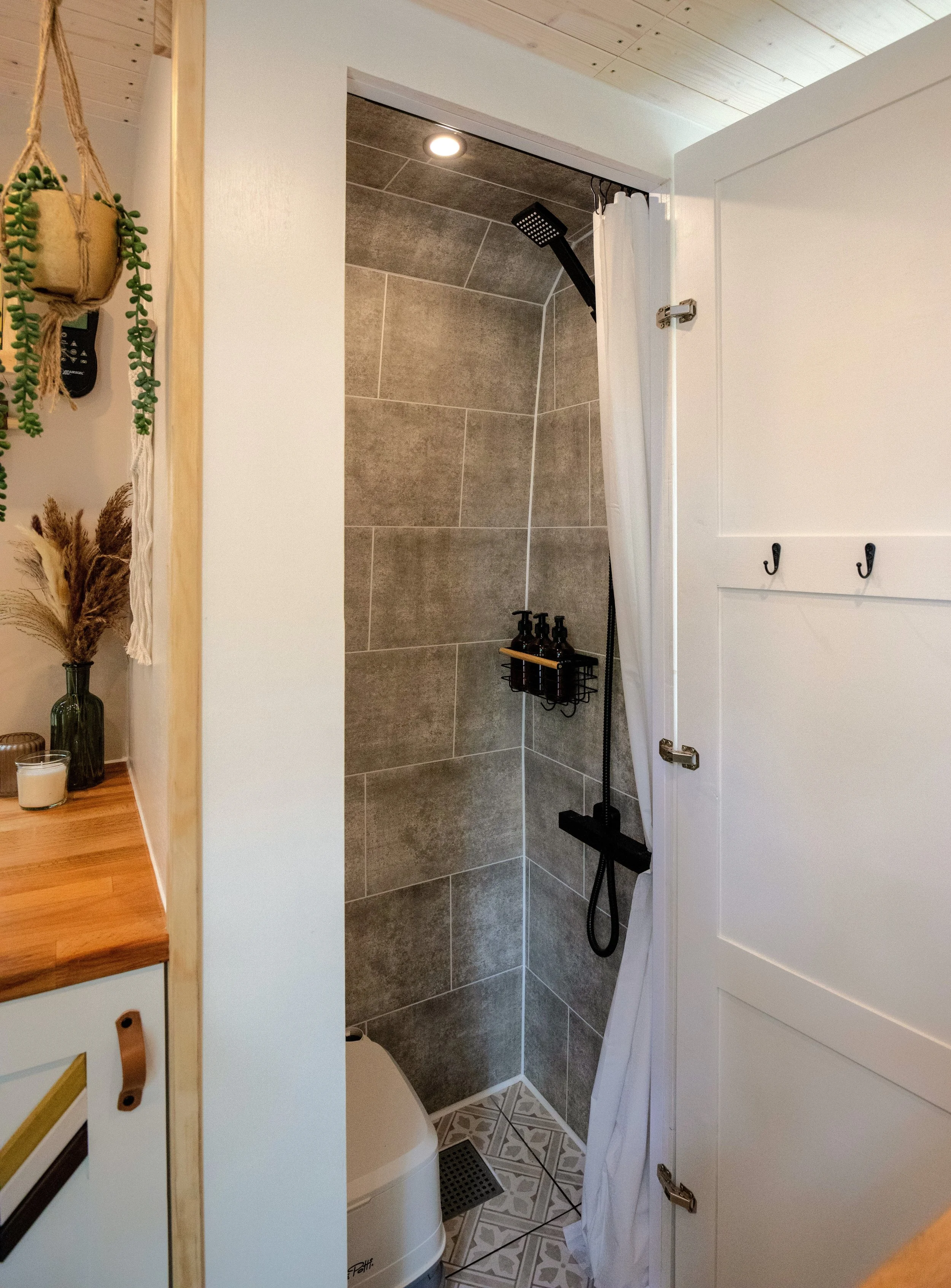 Bobil 18L hot water tank (with electric fill valve with automated shut-off) supplying kitchen tap and shower room with WIFI controller